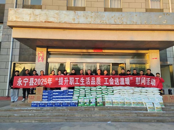 2024年12月25日下午,永寧縣總工會陳邵峰常務(wù)副主席及幫扶中心工作人員一行到天琛公司對現(xiàn)場值守人員進行“雙節(jié)”前的慰問,并將米、面、香油、牛奶等慰問品一一發(fā)到員工手中。